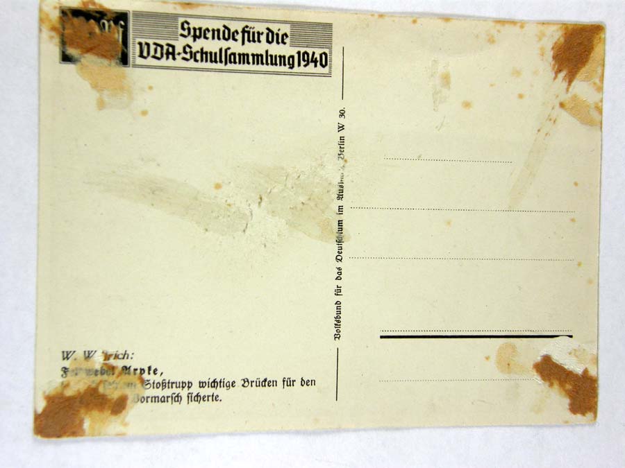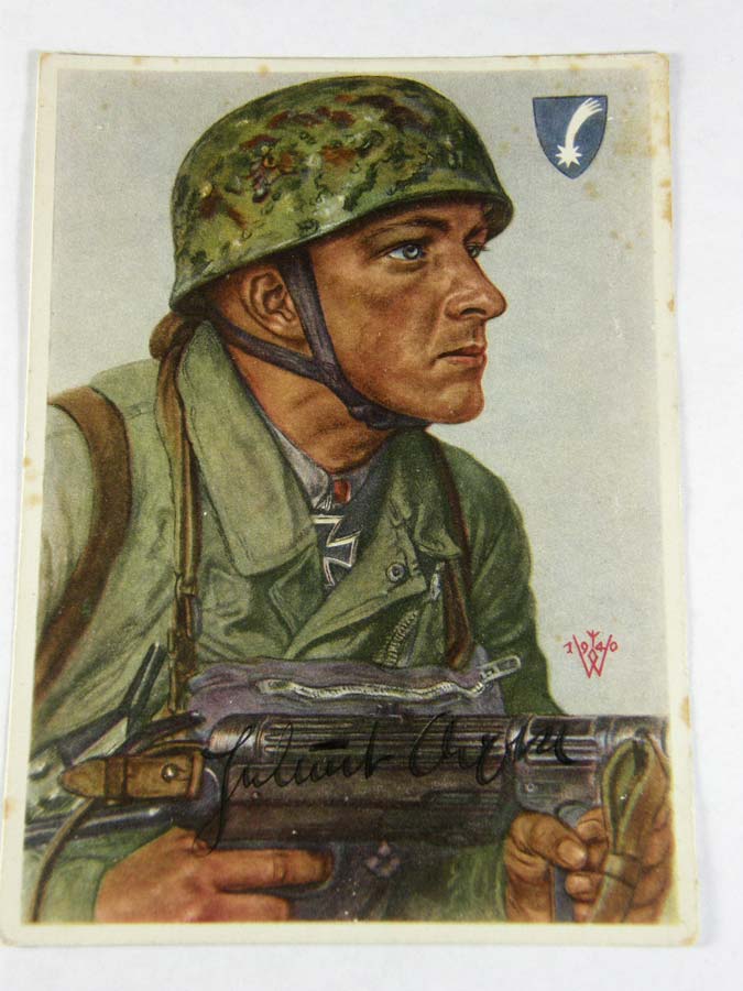 1204PC1 - "Arpke" by Willrich. Stylized Willrich card of 1940 early Knights Cross winner Arpke. Arpke did not survive the war. Rare autographed card. $365