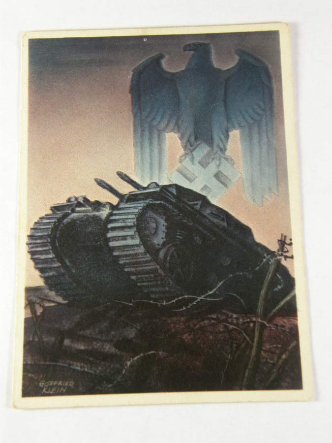 1204PC30 - Gottfried Klein's "Panzer". Gottfried Klein was perhaps the most popular postcard artist of the Third Reich era. Postmarked. $360