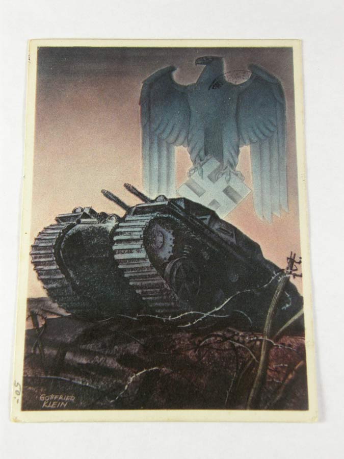 1204PC31 - Gottfried Klein's "Panzer". Gottfried Klein was perhaps the most popular postcard artist of the Third Reich era. Postmarked. $425