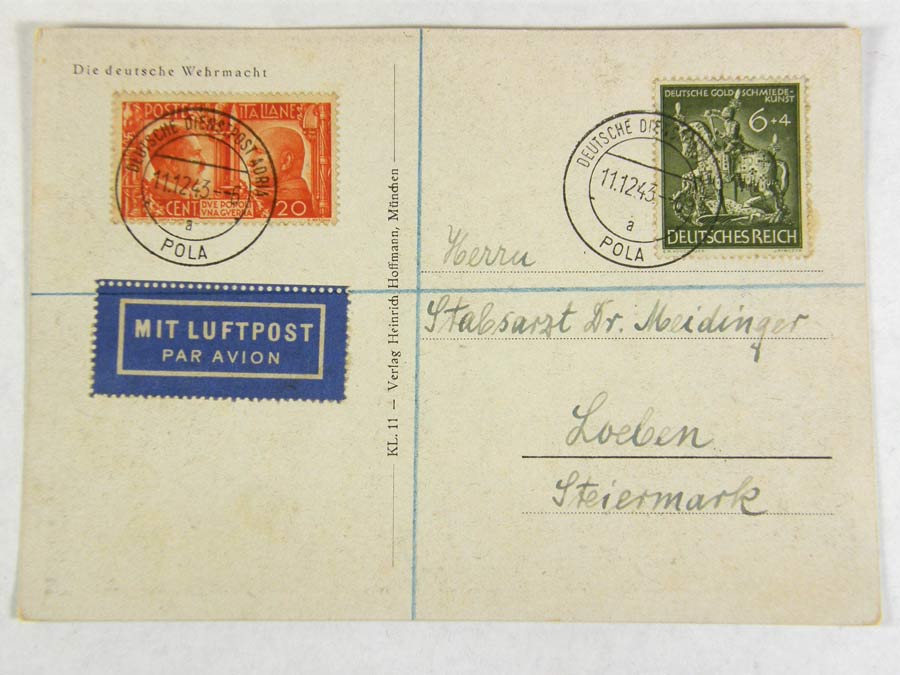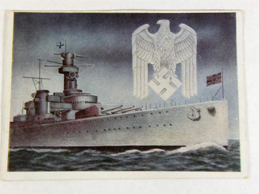1204PC36 - Gottfried Klein's " Kriegsmarine Battleship ". Gottfried Klein was perhaps the most popular postcard artist of the Third Reich era. Airmailed. $385