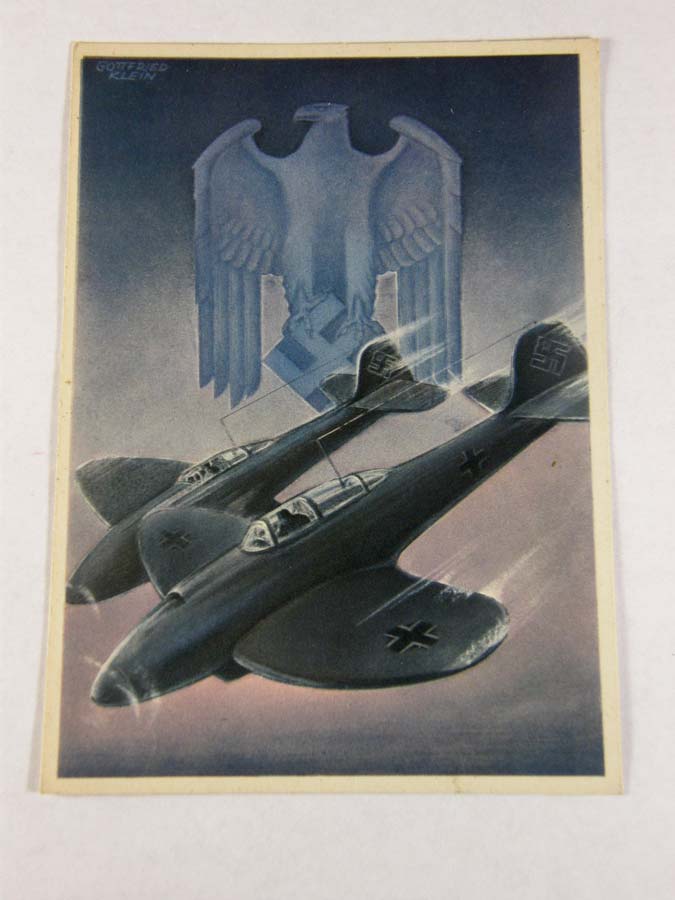 1204PC39 - Gottfried Klein's " Luftwaffe dive bombers ". Gottfried Klein was perhaps the most popular postcard artist of the Third Reich era. Rare pink sky variant. $425