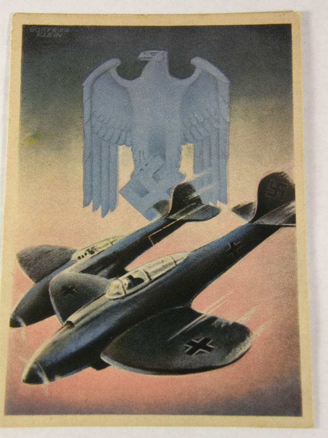 1204PC41 - Gottfried Klein's " Luftwaffe dive bombers ". Gottfried Klein was perhaps the most popular postcard artist of the Third Reich era. Pink sky variant. $425