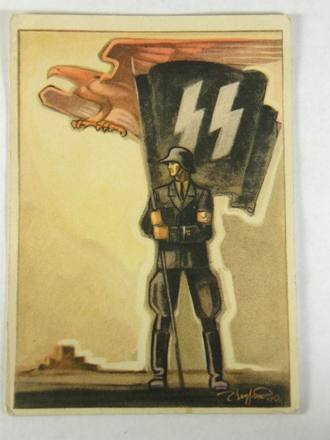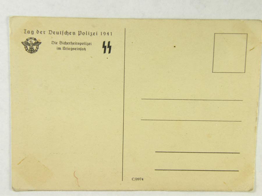 1204PC42 - "Tag der Deutchen Polizei 1941" Police /SS Day 1941 postcard features SS standard bearer with eagle representing the Police. $295