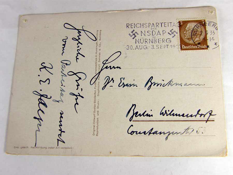 1206PC125 - NURNBERG TAND GEHT DURCH ALLE LAND Card displays two pin holes in upper corners and bottom center. Scarce. $75