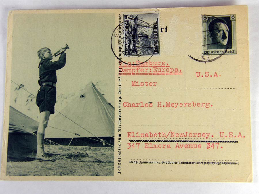1206PC152 - Reichsparteitag 1937. One stamp removed. Hitlerjugend bugler. $25