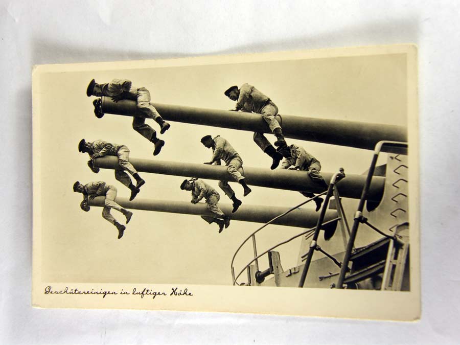 1206PC94 - Kriegsmarine Mannschaffen cleaning turret guns. Photo card. $25