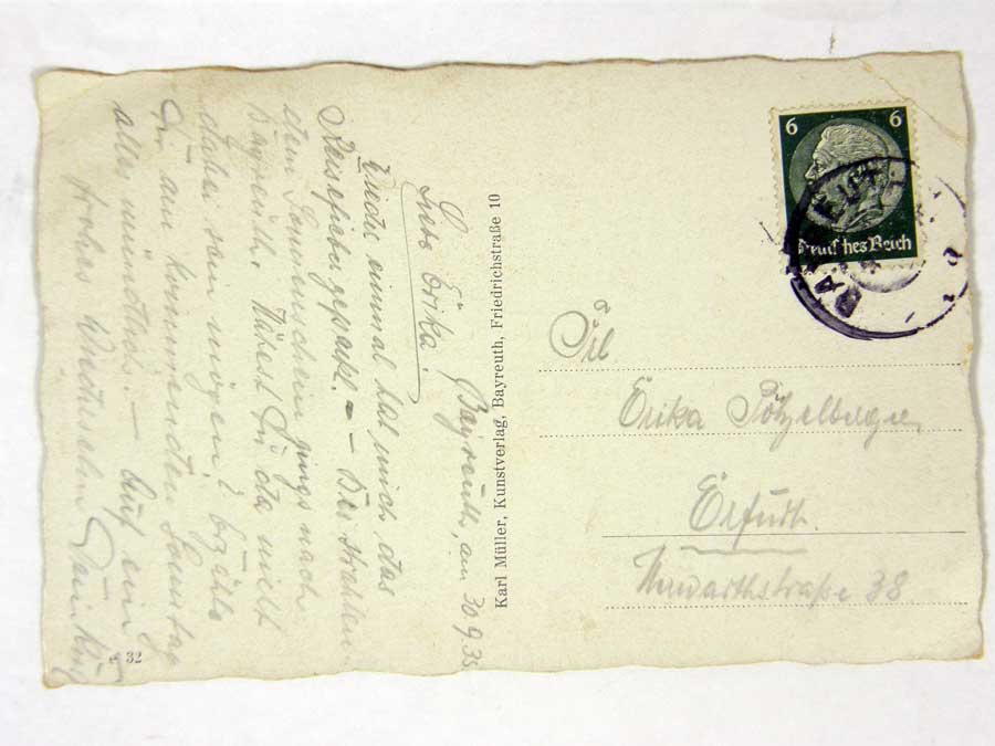 1207PC6 - Bayreuth postcard. Location of the yearly Wagnerian festivals that Adolf Hitler attended during the pre-war years. $8