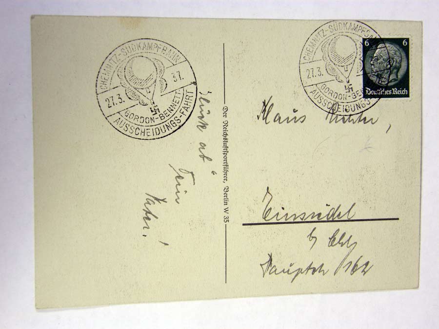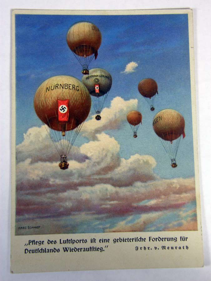 1209PC15 - NÜRNBERG Balloon card featuring hot air balloons with the names Nurnberg and Hermann Goring. Reverse is postmarked. $90