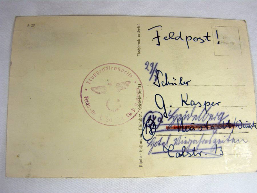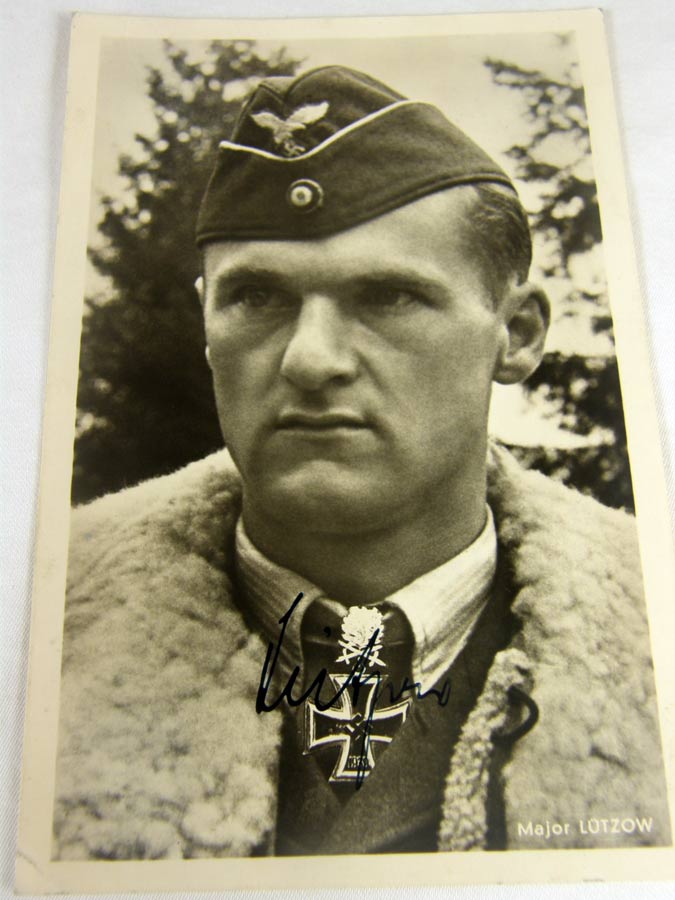 1209PC4 - Autographed Luftwaffe Eichlaubträger mit Schwerten ( Swords) Gunther Lutzow . The reverse displays Feldpost marked. $150