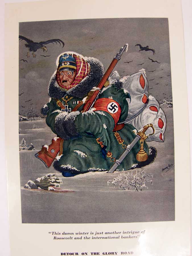 DETOUR ON THE ROAD TO GLORY depicting Adolf Hitler knee deep in Russian snow