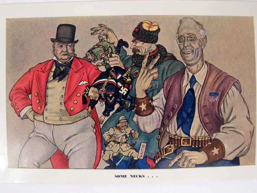 SOME NECKS....showing Roosevelt, Stalin and Churchill stringing up the bad guys