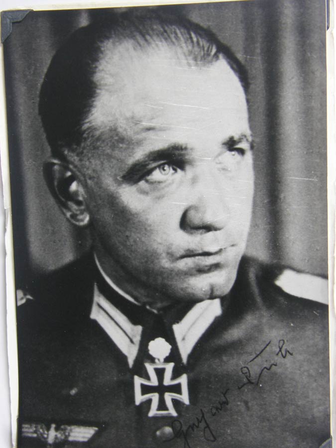 131PC100- POST-WAR SIGNED KNIGHTS CROSS WINNER, OBERST LT. GERHARD PICK 553. EL. $32