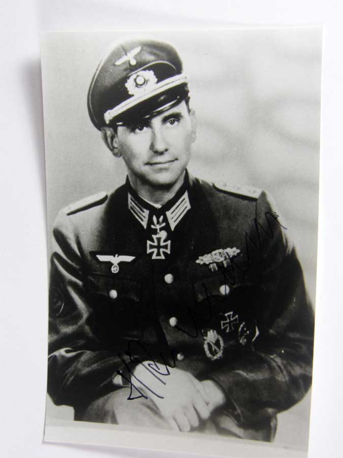 POST-WAR SIGNED KNIGHTS CROSS WINNER, HPTM. D.R. WILHELM REIMANN $32