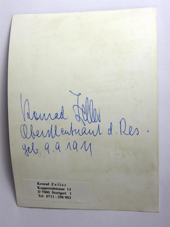 131PC203 - Postwar signed Knight Cross winner Major Konrad Zeller $32
