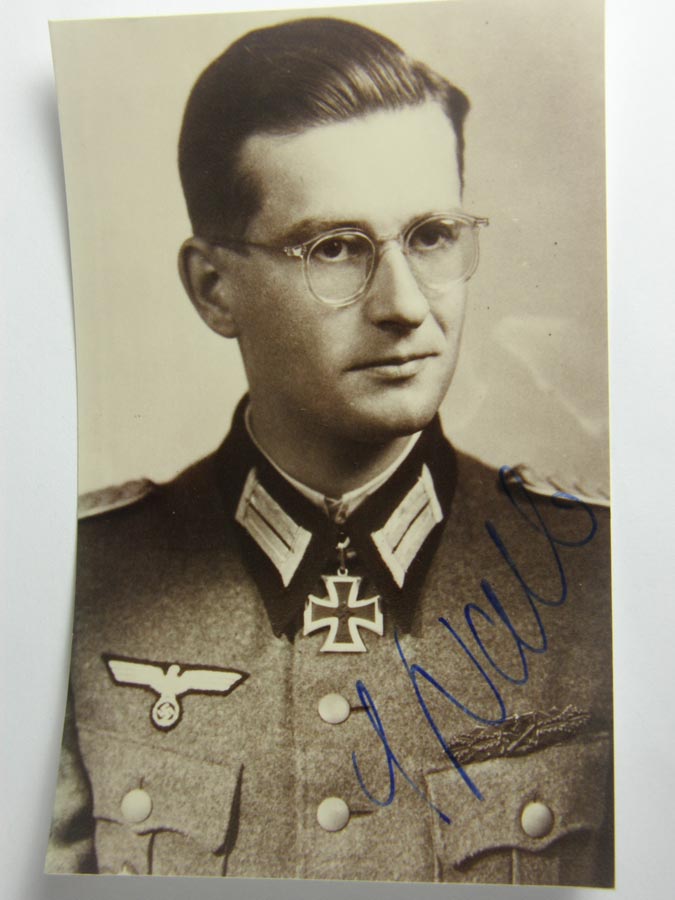 131PC217 - Postwar signed Knight Cross winner Major D. Res. Hans Kalb $32