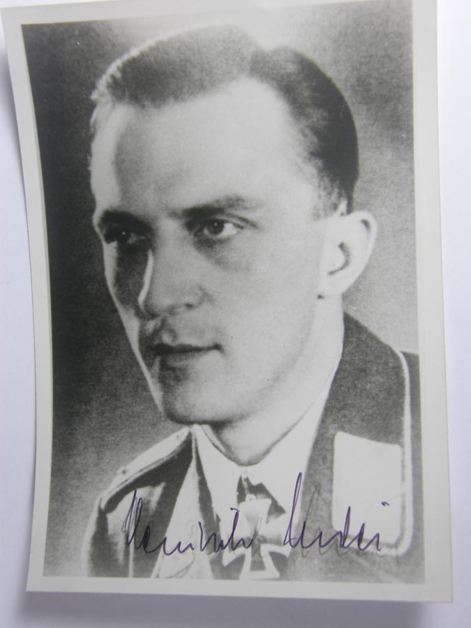 131PC226 - Postwar signed Knight Cross winner OLT. Heinrich Sudel $32