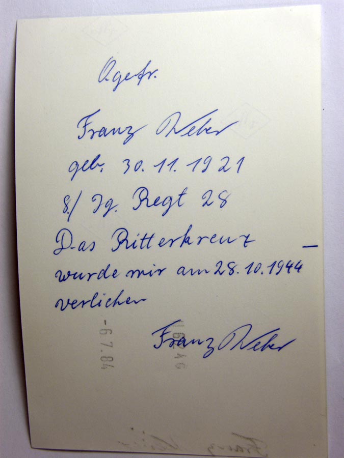 131PC229 - Postwar signed Knight Cross winner Franz Weber $32