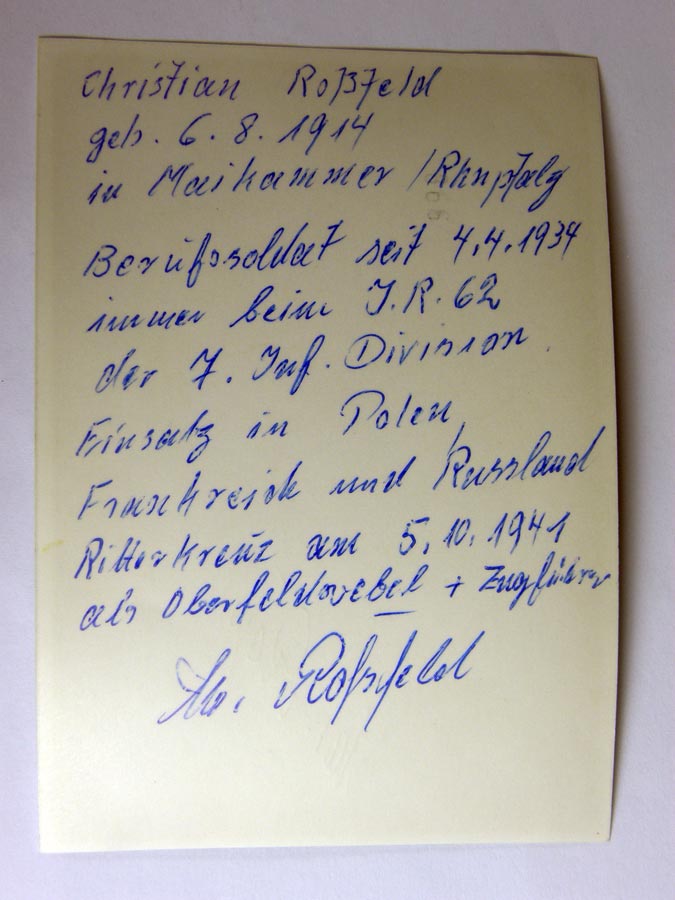 131PC236 - Postwar signed Knight Cross winner OFW. Christian Rossfeld $32