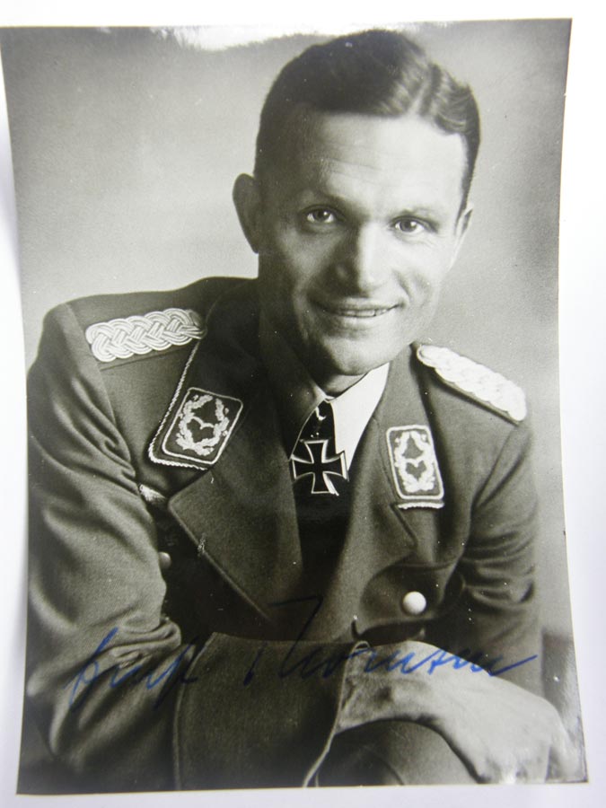 131PC248 - Postwar signed Knight Cross winner Major Ernst-Heinrich Thomsen $32