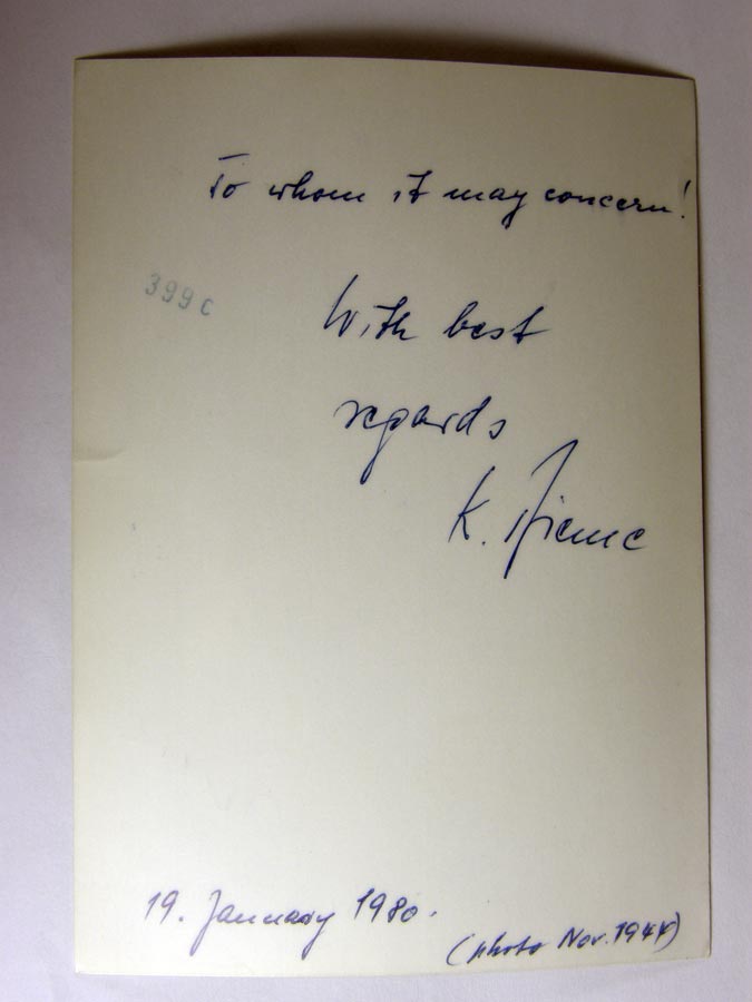 131PC258 - Postwar signed Knight Cross winner Oberstlt. Karl Thieme $32