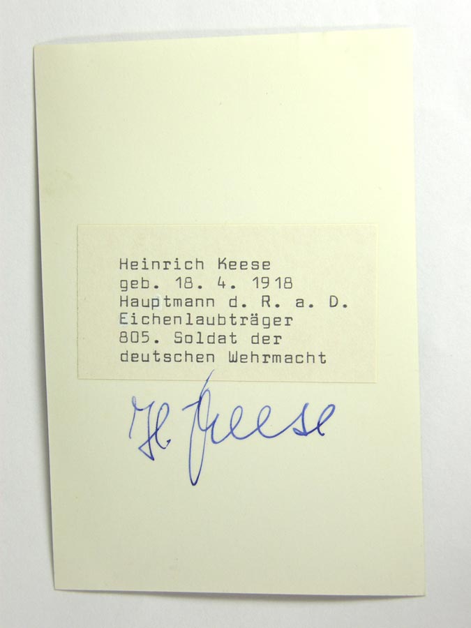 131PC47- POST-WAR SIGNED KNIGHTS CROSS WINNER, MAJ. D.R. HEINRICH KEESE $32