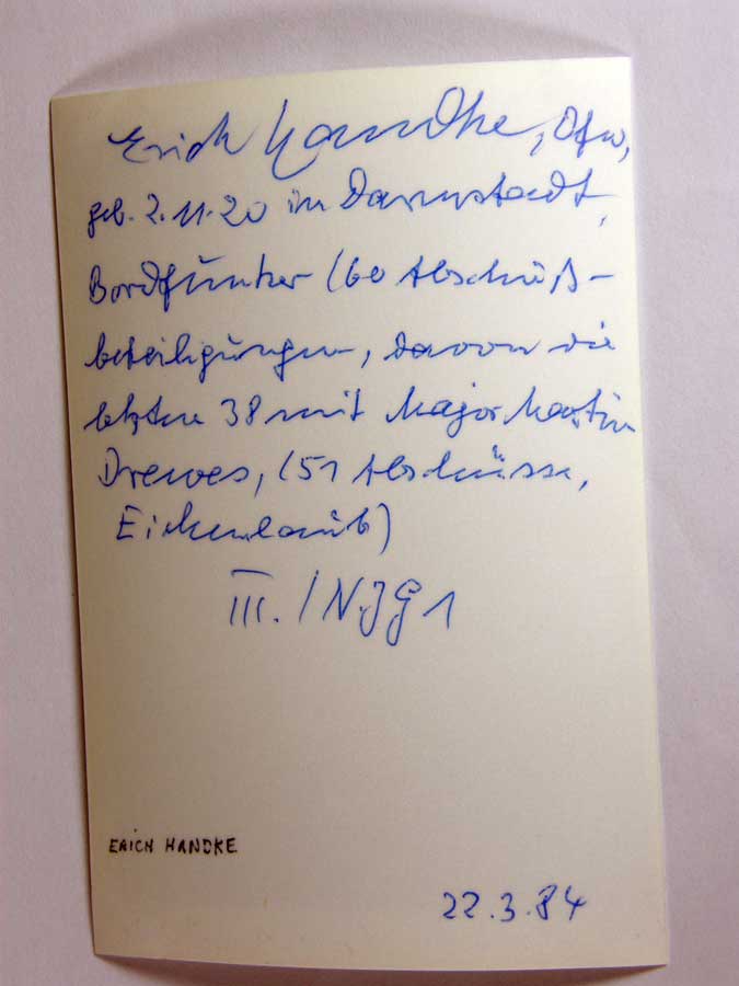 131PC6 - POST-WAR SIGNED KNIGHTS CROSS WINNER, 6- OFW. ERICH HANDKE $32