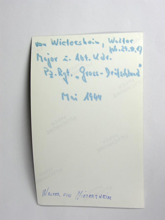 131PC64- POST-WAR SIGNED KNIGHTS CROSS WINNER, WALTER VON WIETERSHEIM $32