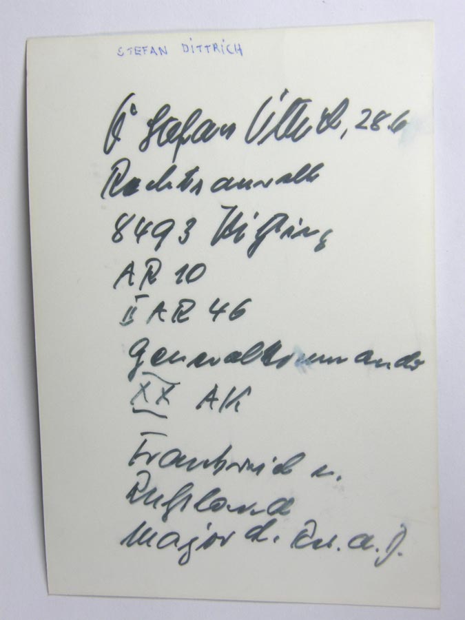 131PC66- POST-WAR SIGNED KNIGHTS CROSS WINNER, MAJ. STEFAN DITTRICH $32