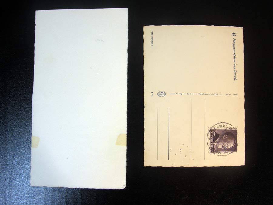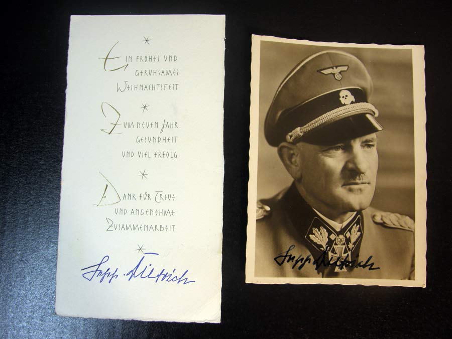 1308PC2 - SS Oberstgruppenfuhrer Sepp Dietrich postwar signed photo and signed Weihnachtensfest and New Year greetings card. Sepp Dietrich was one of only two Waffen SS commanders to be awarded the extremely rare Diamonds to his Knights Cross. $325