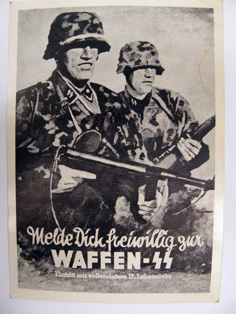 142PC1 - Rare Waffen SS Ottomar Anton postcard. This postcard features two advancing Waffen SS men and is rarely seen in full poster size. $ 325