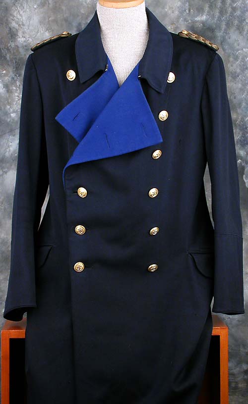 blue lapels that are characteristic for the rank of admirals. The coat has two rows of six