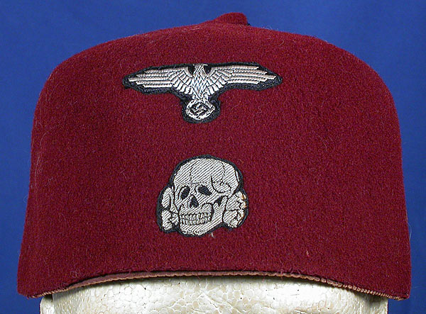 embroidered silver lame` SS Totenkopf over the regiment's name "Deutschland". The