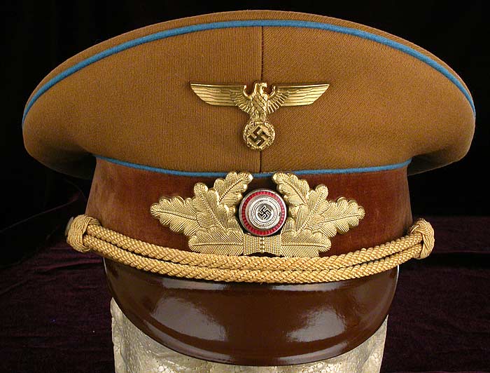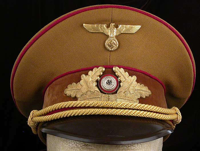 high quality tunic, visor hat and brocade belt are attributed to Hans Michahelles who was