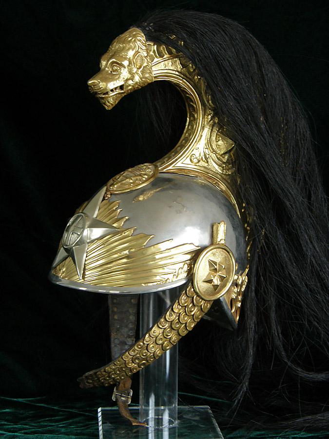 175ITALHEL1 - Italian Carabinieri helmet as worn at the period of King Vittorio Emanuele. The crest on top is the symbol of the house of Savoy. The helmet was worn for parades and ceremonial purposes. $2,000. More Photos |